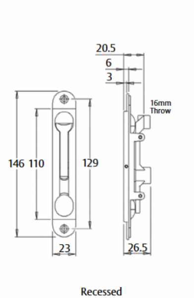 Recess Mounted Flush Bolt.
